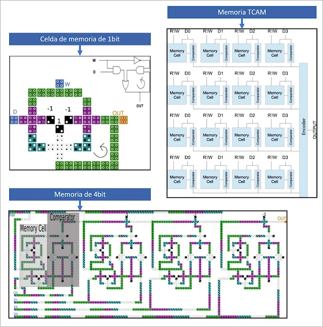 La novedad en el ámbito de las direcciones MAC, que viene unido a los circuitos de QCA, con los que se pueden desarrollar los nanorouter, es que también pueden crearse circuitos de memoria. Los mismos investigadores (Sardinha, L.H.; Silva, D.S.; Vieira, M.A.; Vieira, L.F.; Neto, O.P.V. 2015) desarrollaron un nuevo tipo de memoria CAM que “a diferencia de la memoria de acceso aleatorio (RAM), que devuelve los datos que se almacenan en la dirección dada. CAM, sin embargo, recibe los datos como entrada y regresa donde se pueden encontrar los datos. CAM es útil para muchas aplicaciones que necesitan búsquedas rápidas, como transformaciones de Hought, codificación de Huffman, compresión Lempel-Ziv y conmutadores de red para asignar direcciones MAC a direcciones IP y viceversa. CAM es más útil para crear tablas que busquen coincidencias exactas, como tablas de direcciones MAC“. Esta afirmación fue extraída y copiada textualmente para poner de relieve que los circuitos QCA son la respuesta al almacenamiento y gestión de direcciones MAC para la transmisión de datos en las nano-redes, lo que vendría a confirmar que las vacunas son, entre otras cosas, un medio de instalación de un hardware para el control, modulación y monitorización de las personas.
