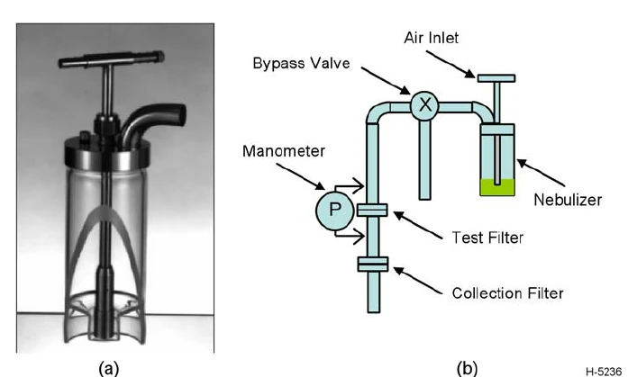 05. En la explicación de los experimentos llevados a cabo se explica que se elaboró una suspensión acuosa como precursor para la síntesis de partículas GO arrugadas. Posteriormente “el precursor se atomizó en gotitas del tamaño de un micrómetro (2 a 4 μm) mediante un nebulizador Collison de seis chorros (BGI Incorporated), y el aerosol se administró mediante nitrógeno gaseoso a un reactor de alúmina mantenido a temperaturas predeterminadas para calentarlo durante varios segundos“. De este texto caben recalcar dos detalles importantes, en primer lugar, se menciona un instrumento denominado “nebulizador Collison”, véase figura 1. En segundo lugar el tamaño de las gotas del aerosol que varían de 2 a 4 micrómetros.