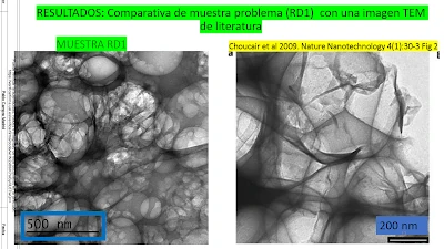 07. Si se compara la imagen de la figura 3 con los resultados obtenidos por (Campra, P. 2021), no se puede negar la evidente similaridad del óxido de grafeno y la potencial configuración del mismo para su difusión, véase en la figura 4 una de las muestras de su estudio.