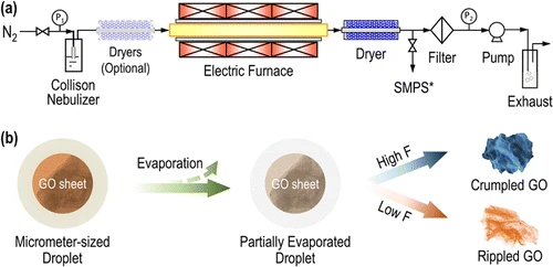Wang, W.N.; Jiang, Y.; Biswas, P. (2012). Arrugado inducido por evaporación de nanohojas de óxido de grafeno en gotitas aerosolizadas: relación de fuerza de confinamiento = Evaporation-induced crumpling of graphene oxide nanosheets in aerosolized droplets: confinement force relationship. Journal of Physical Chemistry, 3(21), pp. 3228-3233. https://doi.org/10.1021/jz3015869