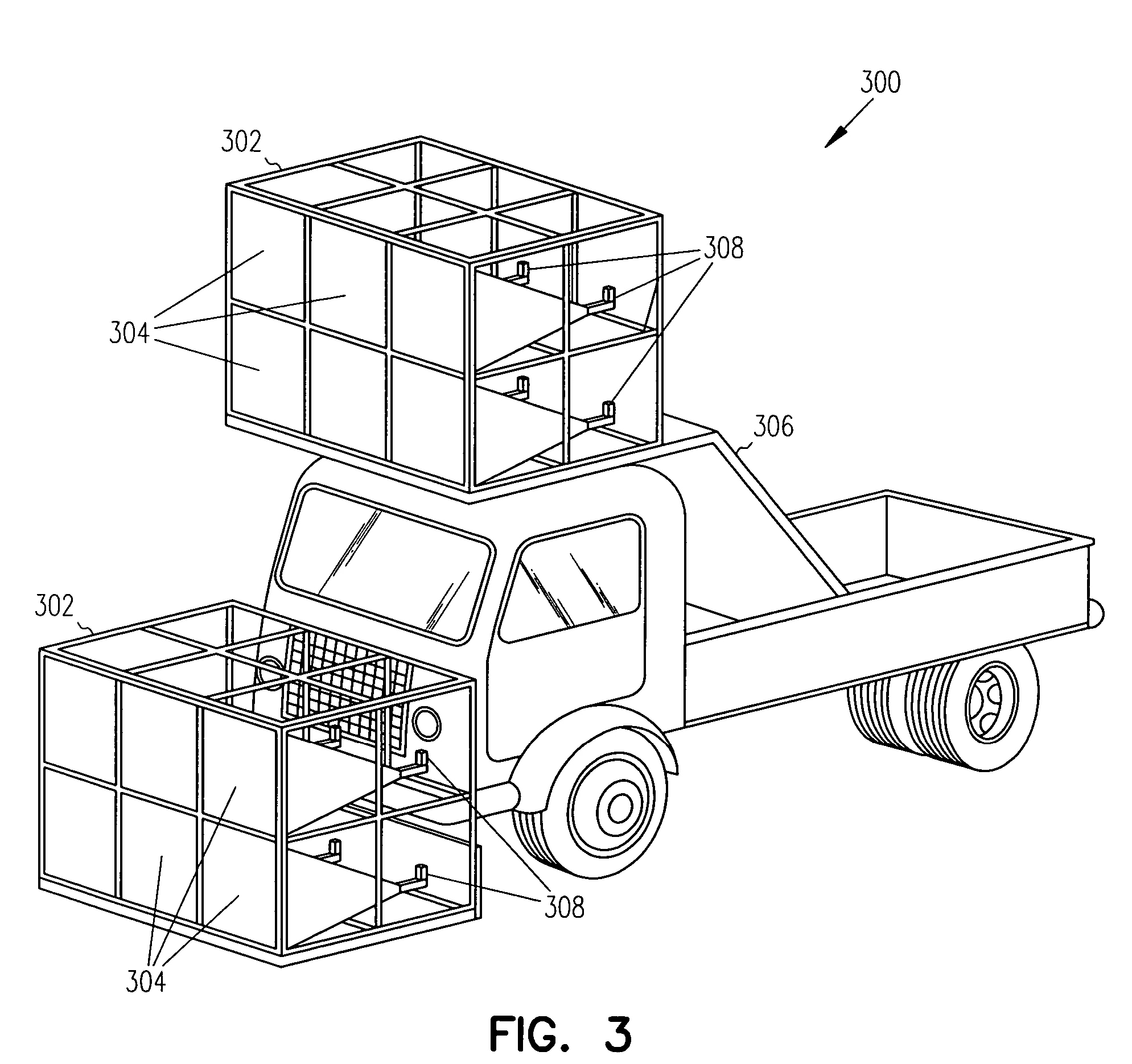 HIGO. 3 ilustra un sistema móvil de energía dirigida de acuerdo con algunas realizaciones de la presente invención. Dirigido al móvil-sistema energético 300 puede comprender dirigido-sistema energético 302 ubicado en vehículo 306. sistema 302 puede comprender una pluralidad de fuentes radiantes no coherentes 308 que pueden generar acumulativamente pulsos de alta energía basados en una combinación estadística de la energía no coherente irradiada desde antenas 304. En algunas realizaciones, el sistema de energía dirigida 100 (HIGO. 1) puede ser adecuado para su uso como sistema 302, aunque el alcance de la invención no está limitado a este respecto. En algunas realizaciones, la combinación antena-fuente 200 (HIGO. 2) puede ser adecuado para su uso como cualquiera o todos los fuentes radiantes no coherentes 308 y antenas 304, aunque el alcance de la invención no está limitado a este respecto. En algunas realizaciones, móvil dirigido-sistema energético 300 También puede incluir cardanes (no ilustrados en HIGO. 3), como cardanes 114 (HIGO. 1), señalar antenas 304 aproximadamente en la misma dirección y/o antenas directas 304 en una dirección seleccionada.