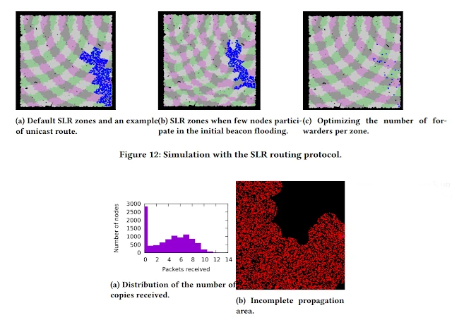 - Profundizando en las características técnicas de la simulación, los investigadores corroboran el modelo de red jerárquica compuesta por tres capas, tal como se explicaba en la topología de nano-redes de la entrada anterior. “Para mantener el simulador simple y rápido mientras permite al investigador controlar la aplicación y los protocolos de red, se proporciona una infraestructura con tres capas de redes principales. Capa de control de acceso físico y de canal. Se ocupa de la propagación de radio y el cálculo de errores de recepción. Los dispositivos simulados están equipados con un exclusivo transceptor nano-inalámbrico, cuyo alcance y orientación son configurables. Esta capa implementa por defecto el modelo TS-OOK con pulsos de 100fs y un parámetro β configurable por cuadro. También se puede modificar fácilmente para implementar cualquier otro modelo basado en pulsos. Debido a que múltiples tramas pueden multiplexarse temporalmente a través del canal, los nodos tienen que rastrear uno (o posiblemente aquellos) en los que están interesados. El hardware o software en los dispositivos a menudo limita el número de tramas que se pueden rastrear simultáneamente. Este valor es configurable en la simulación a través del parámetro maxCurrentReceptions. Esta capa se implementa principalmente en la clase Nodo C++ , con interacciones y estructuras de datos de ubicación de soporte implementadas en la clase de enrutamiento global. Debido a la energía disponible muy limitada, se espera que el rango de comunicación de los nanodispositivos sea muy corto. Se espera que las redes de múltiples saltos, estilo ad-hoc, sean comunes en las nanorredes. Para ello, la capa de enrutamiento implementa tres opciones: sin enrutamiento, inundación y SLR (Sustainable Longevity Routing)“. En esta explicación se caracteriza y confirma el uso de los protocolos de enrutamiento y los modelos de comunicación de las nanorredes, indicando explícitamente el elemento responsable de la comunicación en la nano-red. Se trata del “transceptor nano-inalámbrico“, que encaja con los nanotransceptores de grafeno, tal como indican (Jornet, J.M.; Akyildiz, I. F. 2011 | Jornet, J.M.; Akyildiz, I.F. 2012 | Jornet, J.M.; Akyildiz, I.F. 2013 | Balghusoon, A.O.; Mahfoudh, S. 2020).